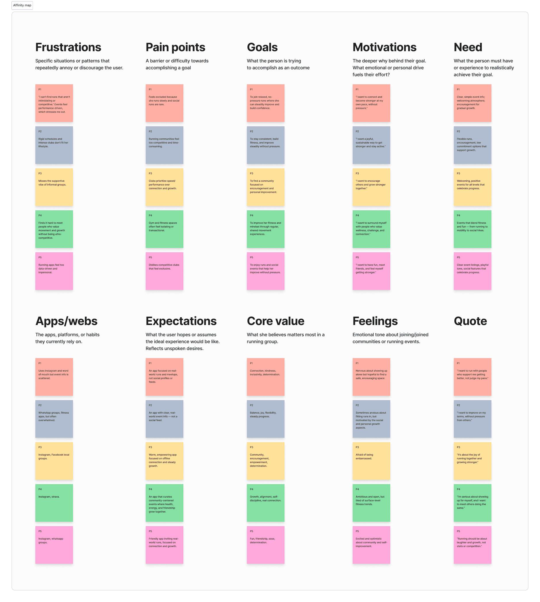I synthesized the interview data using an affinity map to reveal patterns that shaped the design direction.